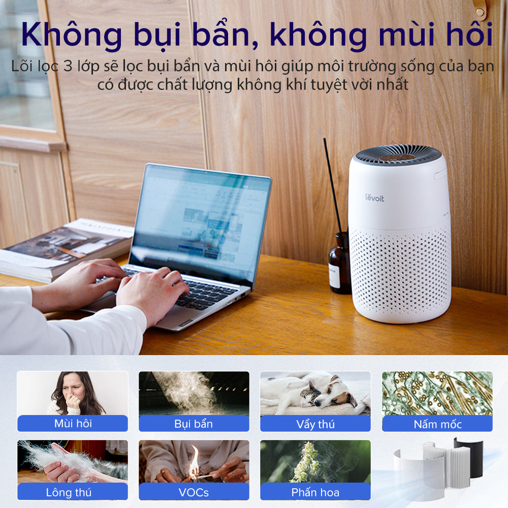 Levoit Core Mini là một trong những model bán chạy nhất của thương hiệu Levoit – hãng gia dụng nổi tiếng đến từ Mỹ. Sở hữu thiết kế nhỏ gọn nhưng khả năng lọc ấn tượng, thiết bị hoạt động hiệu quả trong không gian khoảng 17m². Ngoài ra, máy vận hành êm ái suốt ngày đêm nhờ công nghệ QuietKEAP giảm ồn tối ưu, bộ lọc 3 lớp loại bỏ đến 99.97% bụi mịn PM0.3, mùi hôi và khói thuốc, mang lại bầu không khí trong lành và dễ chịu.
