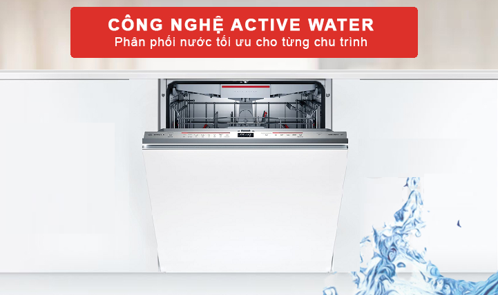 Công nghệ ActiveWater đẩy mạnh hiệu quả sử dụng tài nguyên nước cho máy rửa. Sau mỗi chu trình rửa, lượng nước sẽ được cảm biến độ bẩn. Nếu nước có thể tái sử dụng nó sẽ được dùng cho lần rửa tiếp theo. Bên cạnh đó, tùy thuộc vào lượng bát đĩa có trong khoang, máy sẽ tùy chỉnh lượng nước phun ra. Như vậy sẽ tiết kiệm tối đa lượng nước tiêu thụ.
